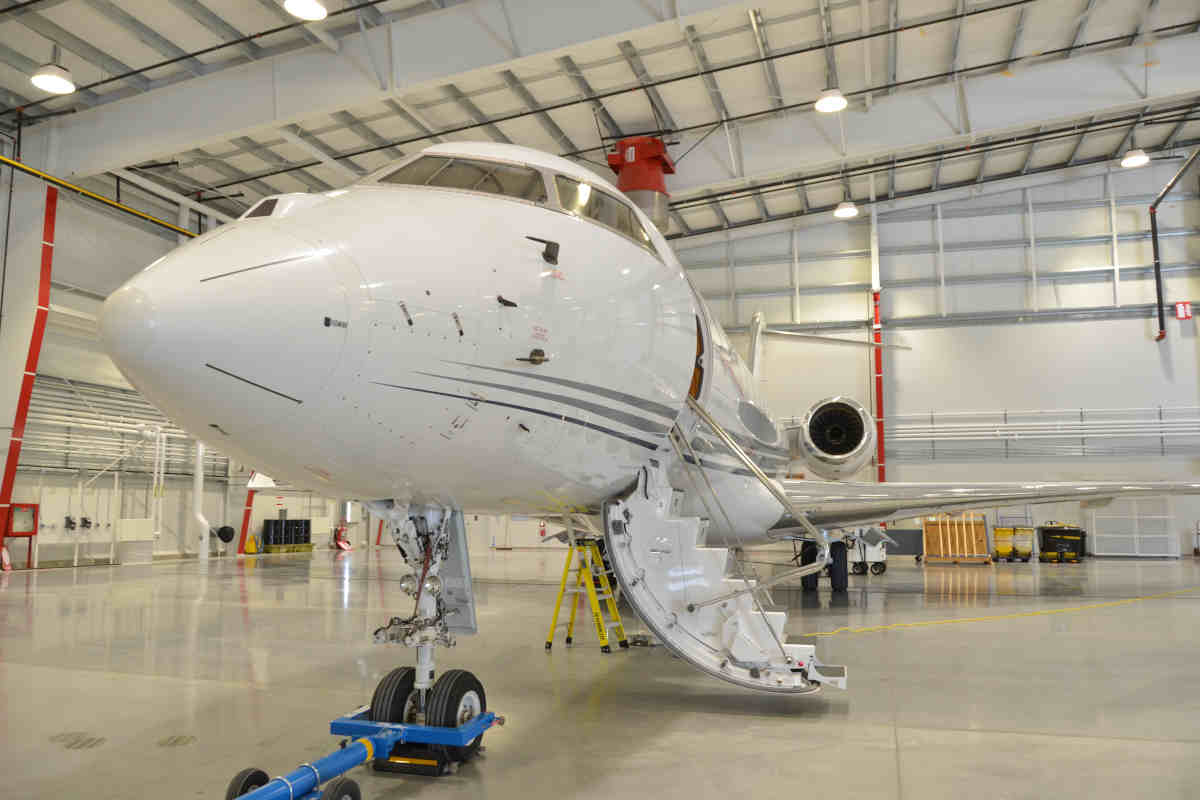 Skyservice’s facility at Toronto’s Lester B. Pearson International Airport (CYYZ) boasts more than 90,000 square feet of modern, energy-efficient hanger space. The new hanger, purpose-built for energy efficiency, features a special single-span design and is equipped with 30-foot doors that can accommodate the tallest of business aircraft tails. The single-span design provides a larger footprint of useable space while allowing for in-hangar aircraft movement.